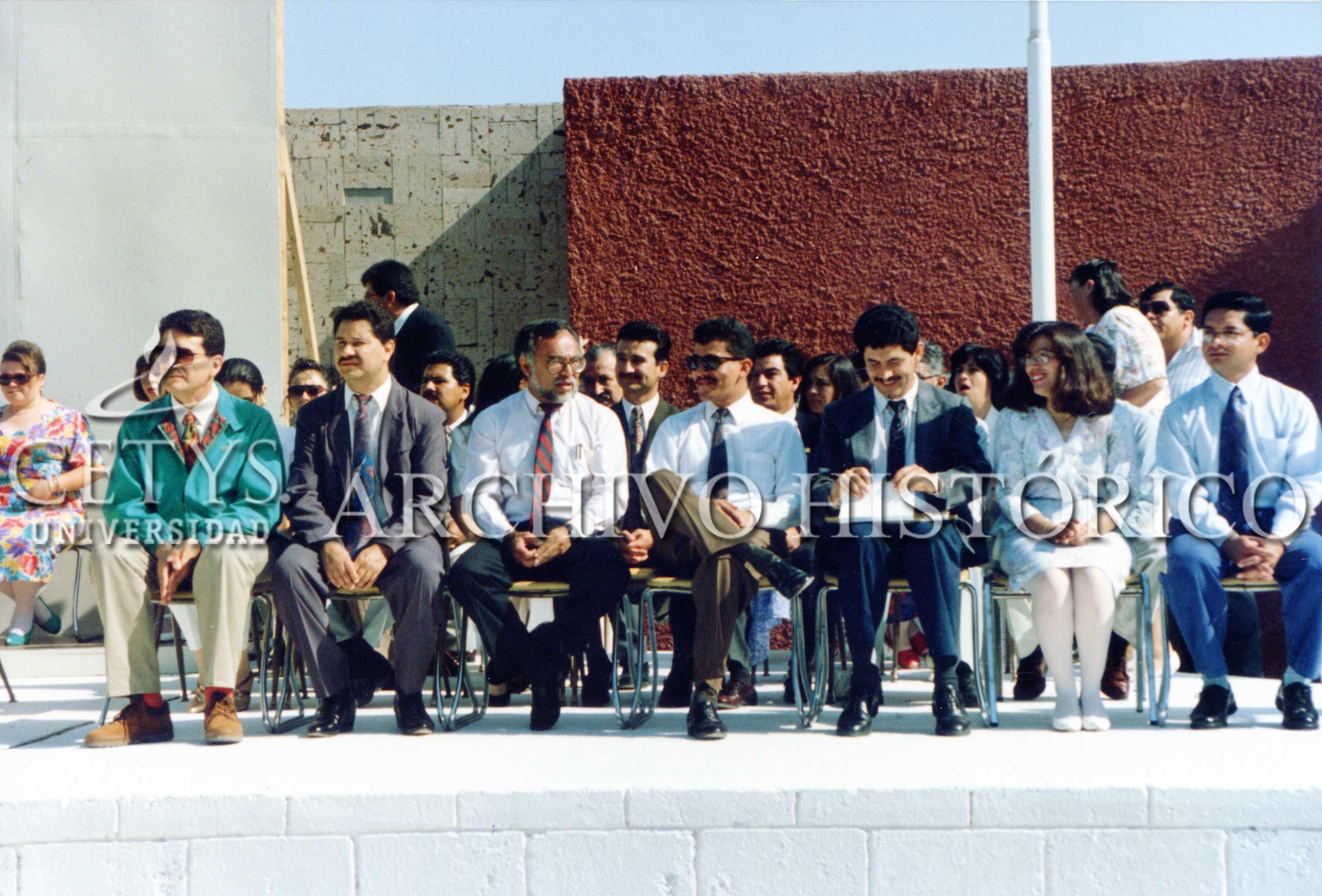 | Personajes: | TIJ-SE 000096: Descripción. Izq-der: 1) Lic.Luis Javier Alvarez Clerici, Egresado 2da. Generación LAE, 2) Ing. Edith Tornero, egresada ICC, 3) Ing. Rubén Magdaleno Ramírez, Director de Ingeniería, 4) Lic. Oscar Licona Nieto, Director General, 5) Lic. Ernesto Ellis Gabilondo, Consejero del IENAC, Capítulo Tijuana, 6) Don Ignacio Fimbres Moreno, Consejero del INEAC, Capítulo Tijuana, 7) Persona no identificada, 8) Lic. Héctor Osuna Jaime, Presidente Municipal de Tijuana, 9) Ing. Jesús Alfonso Marín Jiménez, Rector, 10) Persona no identificada, 11) C.P. Enrique Ríos López, Presidente del IENAC, Capítulo Tijuana, 12) Don Ernesto Ellis Samaha, 13) Persona no identificada, 14) Persona no identificada, 15) Dr. Fernando León García, Director de Planeación, 16) Lic. Enrique Núñez Hurtado, Director Académico del Campus Tijuana, 17) Lic. Pedro Adame, Director de la ECA, 18) Ing. Rodrigo Gutiérrez Sández, Director de Ingeniería, 19) Lic. Miguel Guzmán Pérez, Director de Psicología, C.P. Pedro Arellano Ibañez, Director de Administración y Finanzas. TIJ-SE 000099: Izq-der: 1) Ing. Leopoldo Uribe Reyna, Maestro de Ingeniería. 2) Dr. Alberto Odriozola Urbina, Maestro de Psicología, 3) Persona no identificada, 4) Persona no identificada, 5) Persona no identificada, 6) Persona no identificada, 7) Persona no identificada. Segunda fila: 1) Lic. Sonia Cuellar, Maestra de la Preparatoria, 3) Persona no identificada, 5) Lic. Luis Hugo Pérez Estrada, Maestro de la Preparatoria, 6) Persona no identificada, 7) Ernesto Campa Agráz, Director de Deportes, 8) Persona no identificada, 9) Dra. Patricia Valdés Flores, Maestra de la ECA.... |
